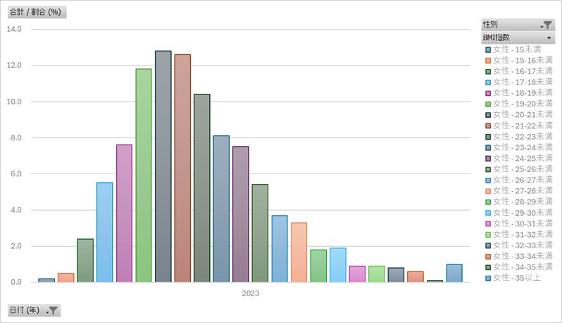 国民健康・栄養調査_表16_BMIの分布_性別_年次 2010年 - 2023年 (列指向形式) ¥110 税込(00450-mhlw-00450171-hyo16-full-list.csv)