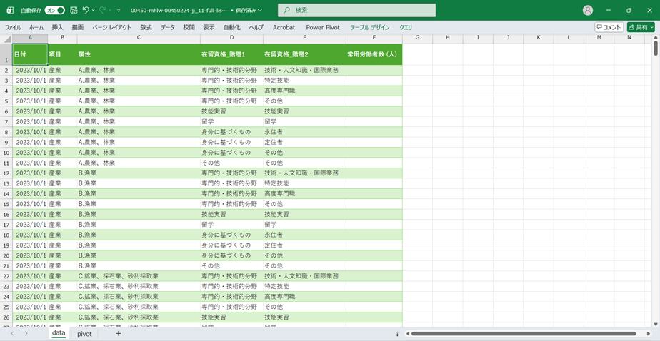 外国人雇用実態調査_事業所調査_表11_産業・企業規模、在留資格別外国人常用労働者数_年次 2023年 - 2024年 (列指向形式)(00450-mhlw-00450224-ji_11-full-list.csv)