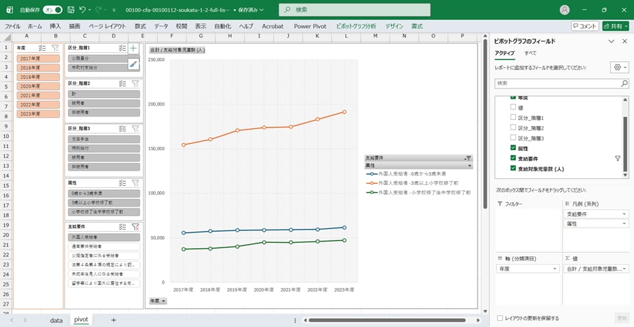 >児童手当事業年報_総括1-2_支給対象児童数(一般受給資格者)_年度次 2017年度 - 2023年度 (列指向形式)