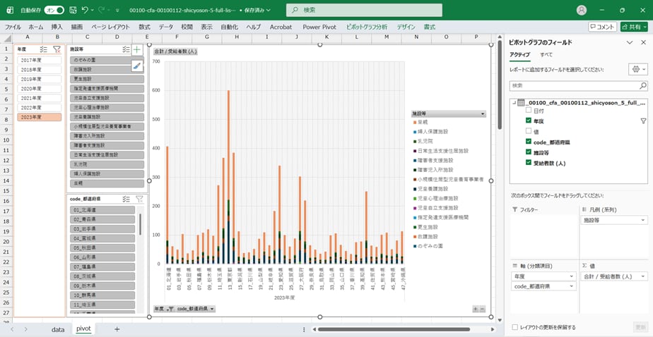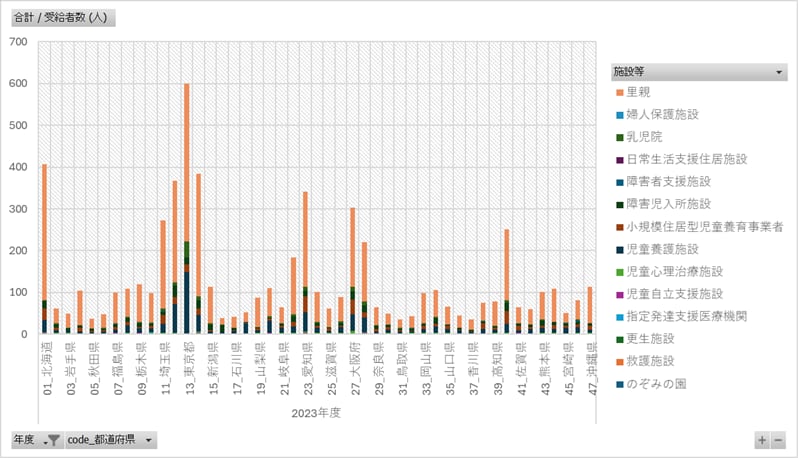 児童手当事業年報_市町村支給分_表5_都道府県別受給者数(施設等受給資格者)_年度次 2017年度 - 2023年度 (列指向形式)(00100-cfa-00100112-shicyoson-5-full-list.csv)