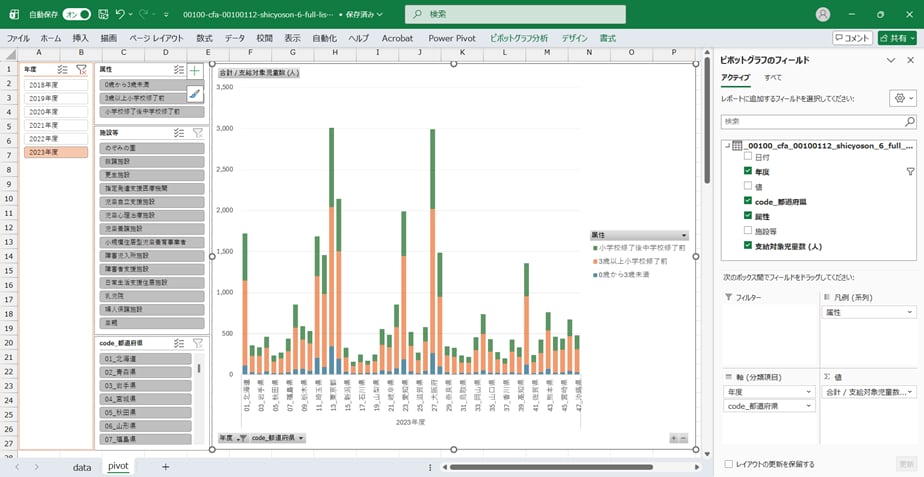児童手当事業年報_市町村支給分_表6_都道府県別支給対象児童数(施設等受給資格者)_年度次 2017年度 - 2023年度 (列指向形式)(00100-cfa-00100112-shicyoson-6-full-list.csv)