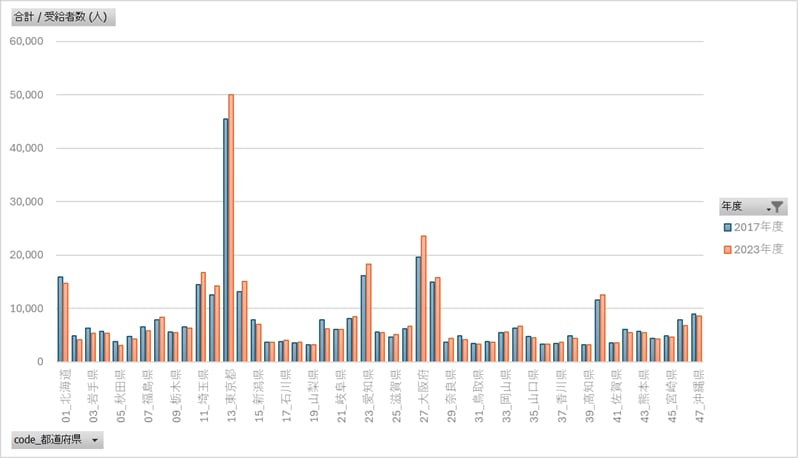 児童手当事業年報_公務員分_表11_都道府県別受給者数_年度次 2017年度 - 2023年度 (列指向形式)(00100-cfa-00100112-koumuin-11-full-list.csv)