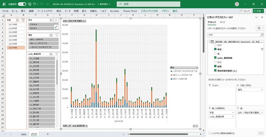 児童手当事業年報_公務員分_表12_都道府県別支給対象児童数_年度次 2017年度 - 2023年度 (列指向形式)(00100-cfa-00100112-koumuin-12-full-list.csv)