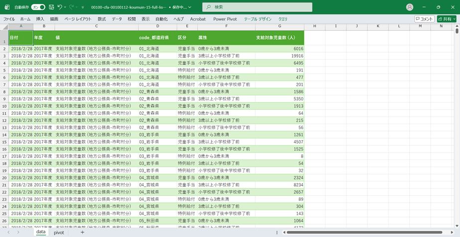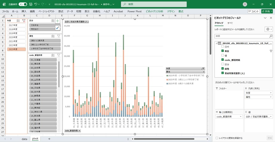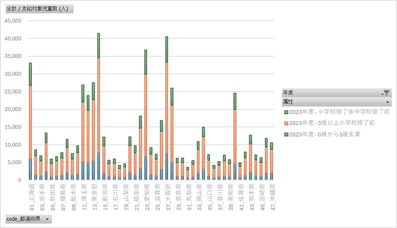 児童手当事業年報_公務員分_表15_都道府県別支給対象児童数_年度次 2017年度 - 2023年度 (列指向形式)(00100-cfa-00100112-koumuin-15-full-list.csv)