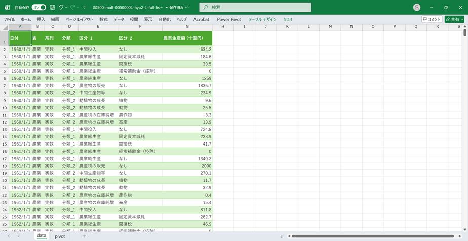 農業・食料関連産業の経済計算_2020年基準_表2-1_総括表_年次 1960年 - 2024年 (列指向形式)(00500-maff-00500001_b2020-hyo2-1-full-list.csv)