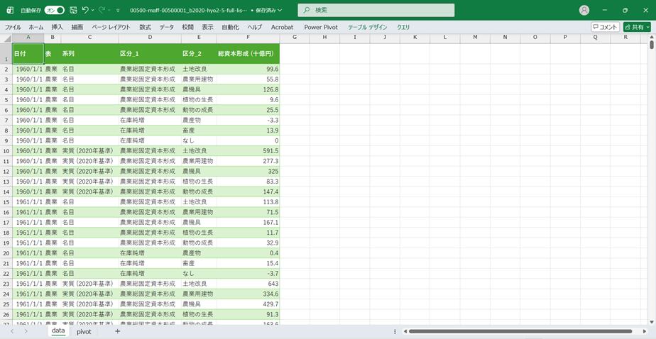 農業・食料関連産業の経済計算_2020年基準_表2-5_総資本形成_年次 1960年 - 2024年 (列指向形式)(00500-maff-00500001_b2020-hyo2-5-full-list.csv)