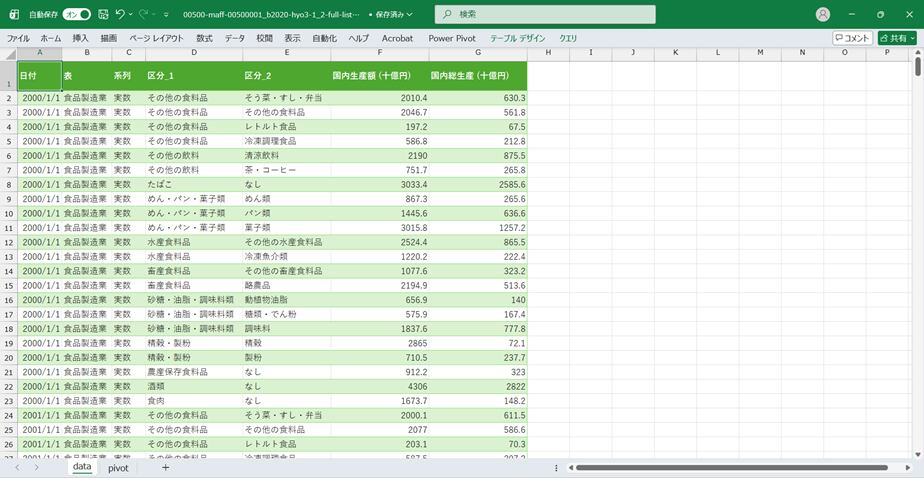 農業・食料関連産業の経済計算_2020年基準_表3-1・2_国内生産額・国内総生産_年次 2000年 - 2024年 (列 - 複数値形式)(00500-maff-00500001_b2020-hyo3-1_2-full-listm.csv)