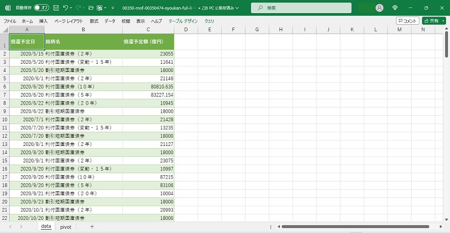 >国債の償還予定額_日次 2020年5月 - 2026年1月 (列指向形式)