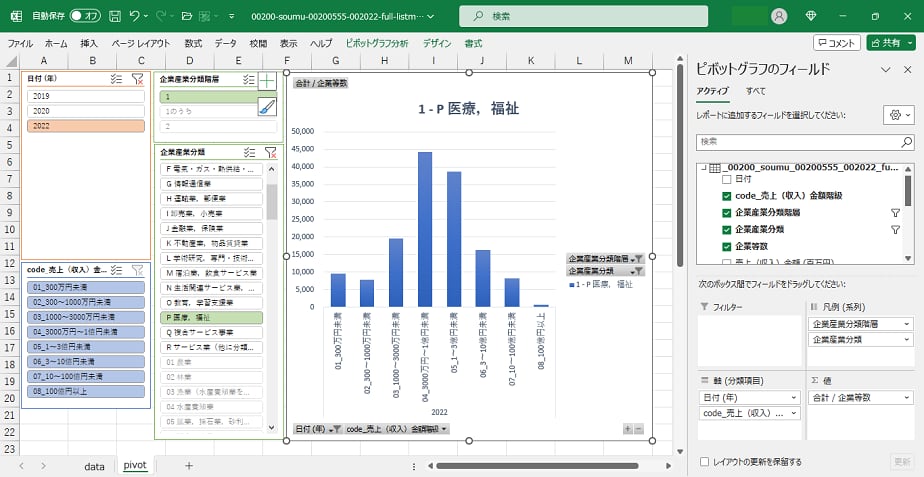 経済構造実態調査_表002022_企業産業(中分類)、売上(収入)金額階級別企業等数、売上(収入)金額、費用総額、主な費用項目及び付加価値額_年次 2019年 - 2024年 (列 - 複数値形式)(00200-soumu-00200555-002022-full-listm.csv)