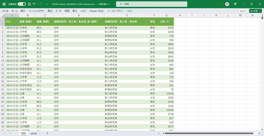 科学技術研究調査_表a105_採用・転入,転出研究者数_年次 2014年 - 2024年 (列指向形式)(00200-soumu-00200543-a105-extract-list.txt)