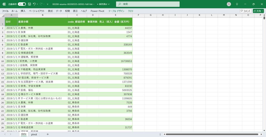 経済構造実態調査_表00501_産業(大分類)別売上(収入)金額―全国、都道府県 _年次 2019年 - 2023年 (列 - 複数値形式)(00200-soumu-00200555-00501-full-listm.csv)