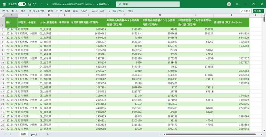 経済構造実態調査_表00602_卸売業,小売業別の事業所数及び年間商品販売額―都道府県_年次 2019年 - 2023年 (列 - 複数値形式)(00200-soumu-00200555-00602-full-listm.csv)