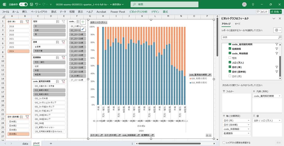 労働力調査_四半期_1-4-6_雇用契約期間,配偶関係,年齢階級別役員を除く雇用者数 2018年Q1 - 2024年Q4 (列指向形式)(00200-soumu-00200531-quarter_1-4-6-full-list.csv)