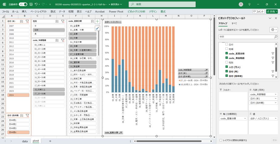 労働力調査_四半期_2-2-1_年齢階級,産業別就業者数-第12・13回改定産業分類による 2007年Q1 - 2024年Q4 (列指向形式)(00200-soumu-00200531-quarter_2-2-1-full-list.csv)